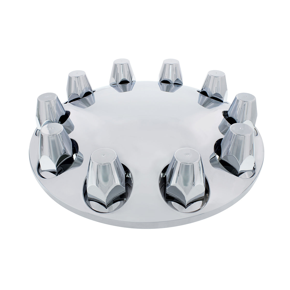 - Chrome ABS plastic front axle cover set with unique one-piece Moon cover design.